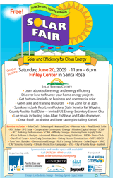 Solar power means energy independence. So does getting around by bike. That's why the Solar Fair is partnering with Sonoma County Bicycle Coalition to offer free valet bicycle parking at the event. Don't get stuck in traffic. Don't search for parking. Just roll right up, stress-free to the bike valet, and enjoy the fun knowing your bike is safe and sound. YOU are solar-powered!